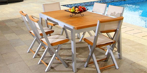 Creada para brindar confort y elegancia a los ambientes exteriores. Su corte moderno, futurista y sofisticado la convierten en la línea estrella de Diseños Tropicales.